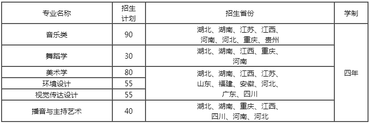 我校藝術專業現設有音樂類、舞蹈學、美術學、環境設計、視覺傳達設計、播音主持與藝術等6個本科專業(類),10多個專業方向,學校現有中國語言文學一級學科下的藝術文化學二級學科碩士點和教育學一級學科下的課程與教學論(音樂、美術、書法)方向碩士點,藝術碩士專業學位點已通過湖北省政府學位委員會全體會議審議。學校擁有一流的藝術教學科研設施,并建立了26個校外實習實踐基地。