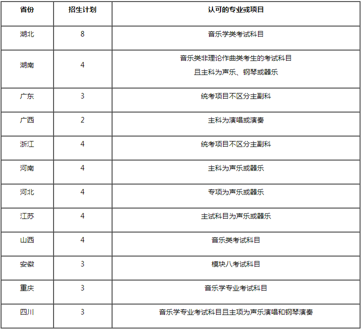 1.考生須參加所在省級(jí)考試部門統(tǒng)一組織的音樂專業(yè)考試,成績(jī)達(dá)到省統(tǒng)考本科合格分?jǐn)?shù)線,取得音樂專業(yè)省統(tǒng)考合格證且合格證類別符合我校要求。