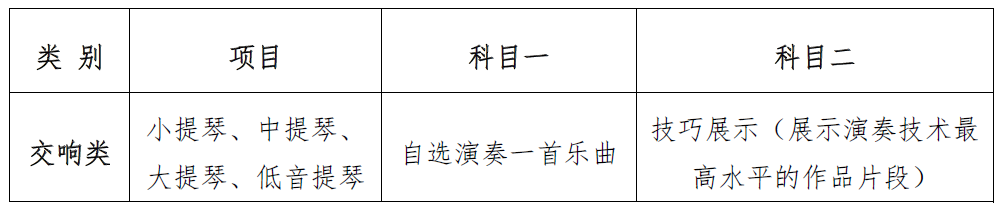 2.科目一由主考評委決定演奏時間長短,考試時間不超過5分鐘;科目二考試時間最長不超過3分鐘。