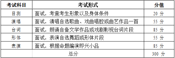 表演考試是對考生基本素質的綜合考查。除了對考生外部形象、氣質進行考查外,更主要的是對考生的想象力、理解力、表現力、激情和應變能力等內在素質的考查。