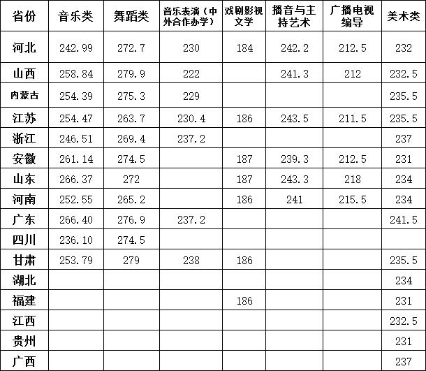湖南師范大學(xué)2017年省外藝術(shù)類專業(yè)合格分?jǐn)?shù)線