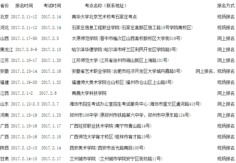 1、報名對象:省級教育行政部門組織的2017年美術(shù)專業(yè)統(tǒng)考,成績合格的考生;