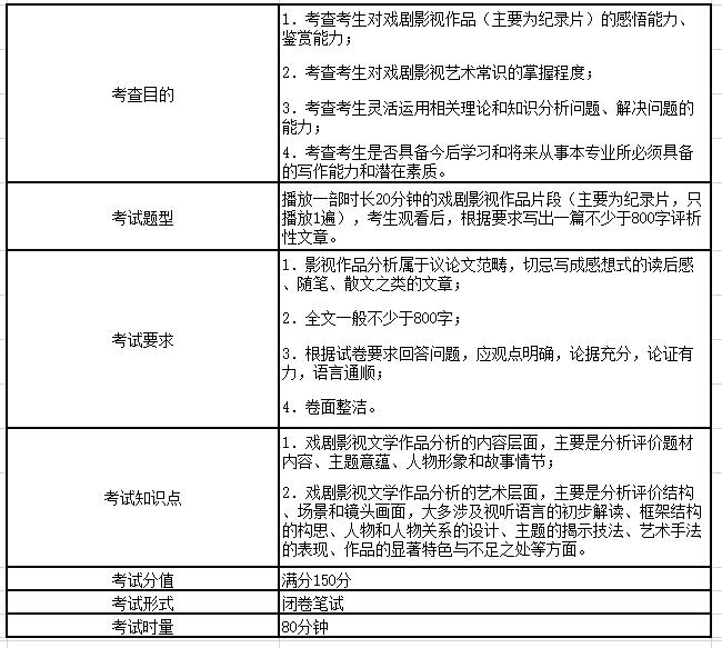 戲劇影視文學專業(yè)招生考試由下面兩門科目的筆試組成,滿分300分。
