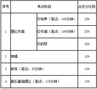 音樂類專業考試,專業成績總分為300分,具體考試科目根據主科所報類別的不同,分為兩種類型: