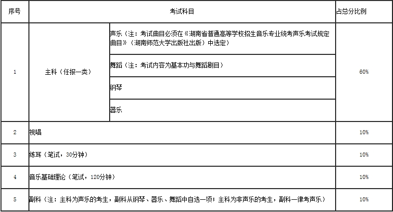 舞蹈類(即音樂類專業考試中主科為舞蹈的考生)不單獨組織專業考試,考生直接參加音樂類專業考試,其成績既是舞蹈類專業考試成績,也是音樂類專業考試成績。