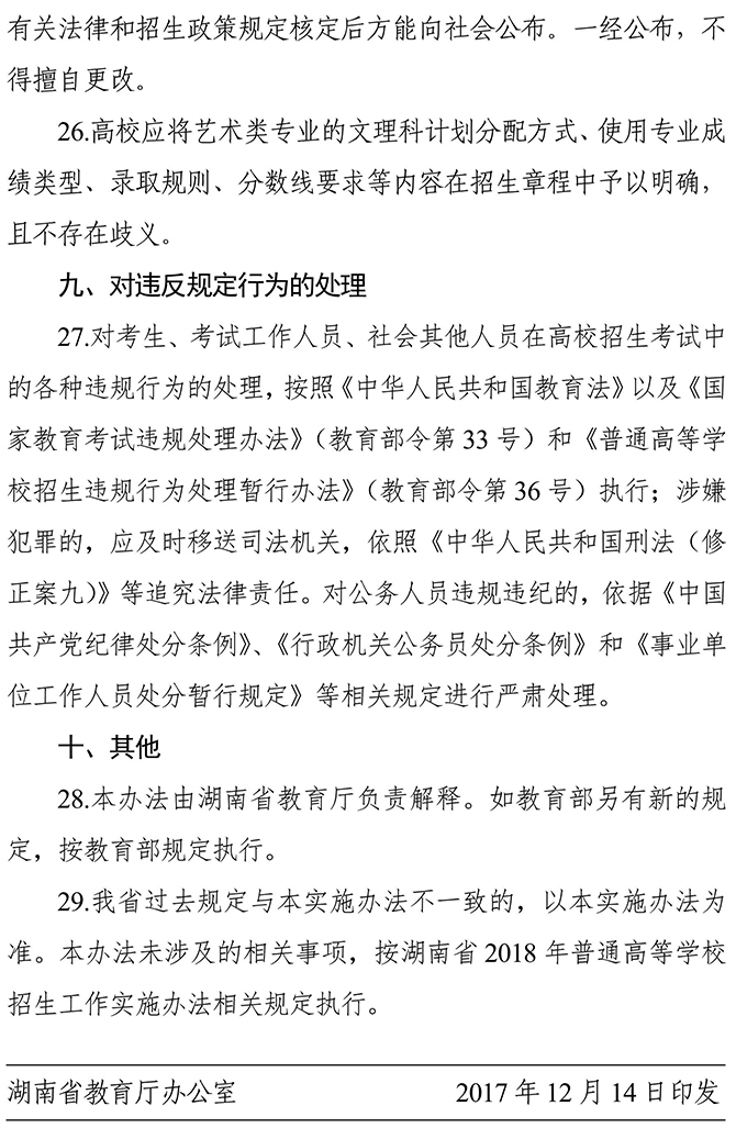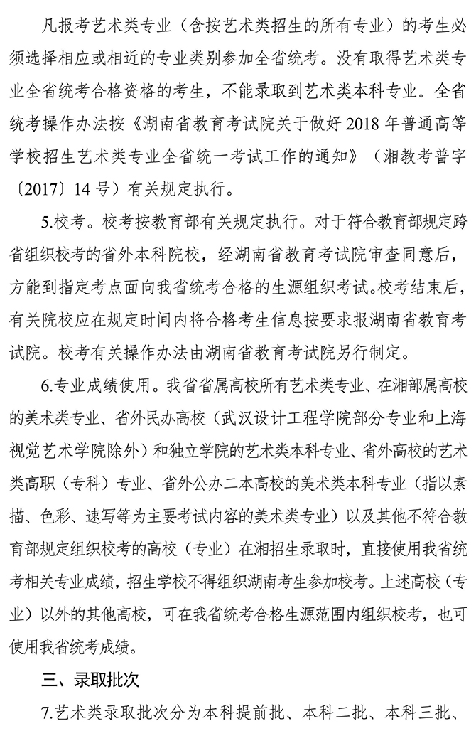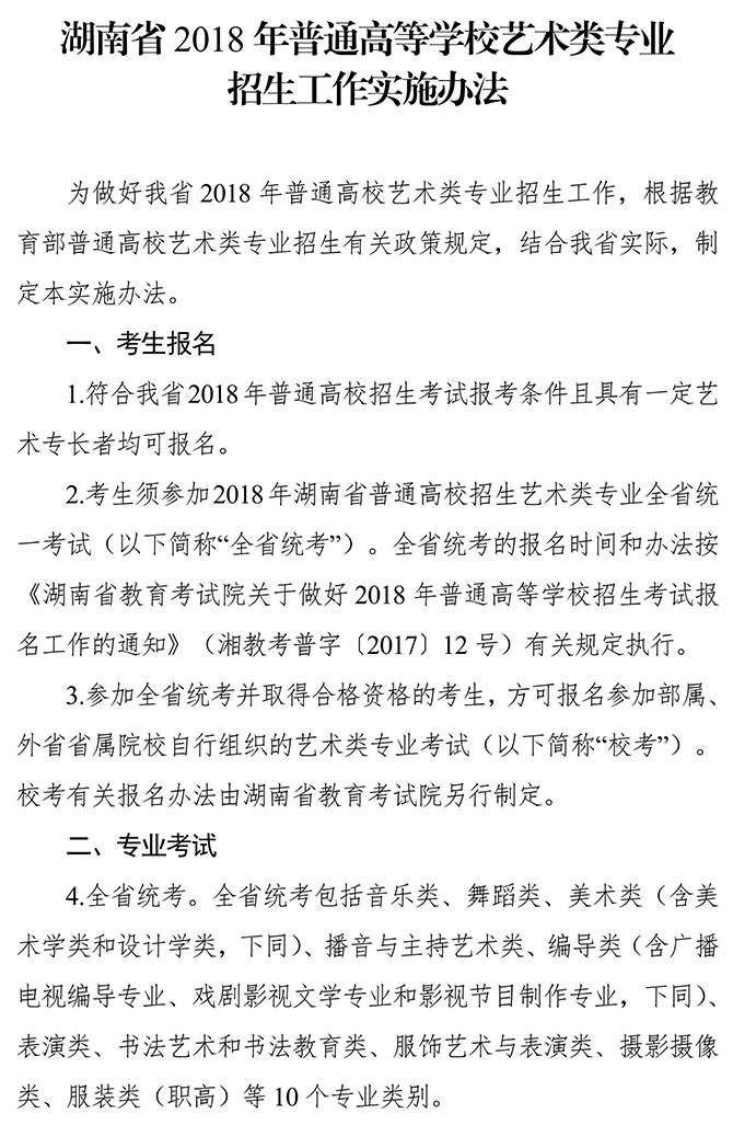 湖南省2018 年普通高等學校藝術(shù)類專業(yè)招生工作實施辦法
