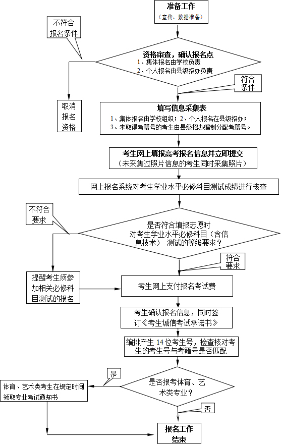 (1)報名信息:高級中等教育學校應屆畢業生的報名信息主要由中學負責組織考生網上填報,往屆生和社會考生的報名信息主要由市、縣(市、區)招辦負責組織考生網上填報;