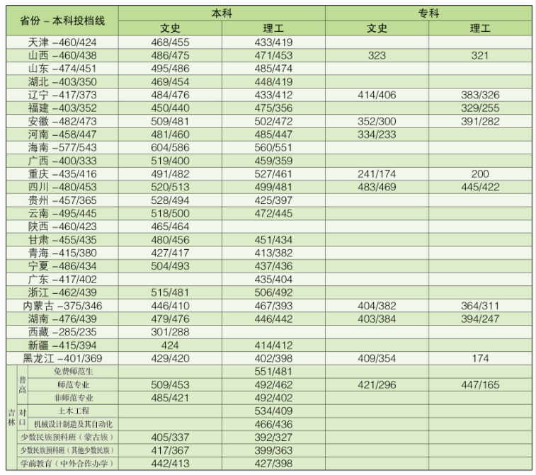 2016年白城師范學院本科藝術類分省、分專業錄取分數
