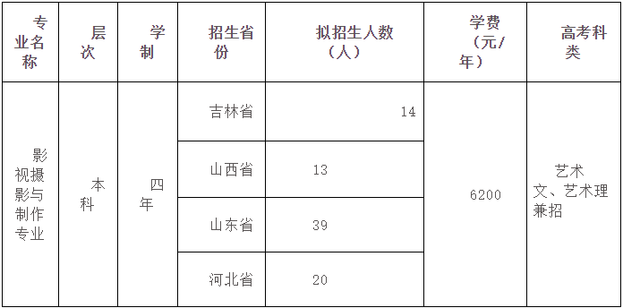 2.影視攝影與制作專業(本科)2017年擬招生總計劃為86人,分省計劃見下表: