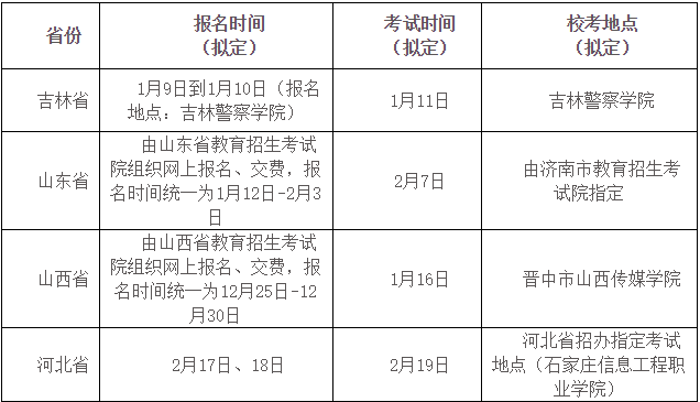 影視攝影與制作專業(本科)招生考試由我院在各省組織進行專業課校考。參加??嫉目忌璧剿谑≈付ǖ募志鞂W院??伎键c報名參加考試,各省報名與考試時間擬為: