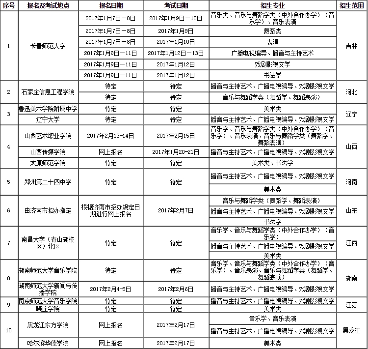 注:我校在省外設(shè)立的校考考點(diǎn)的報(bào)名及考試時(shí)間、地點(diǎn)、招生專業(yè)和招生范圍陸續(xù)更新中,請(qǐng)隨時(shí)關(guān)注長(zhǎng)春師范大學(xué)招生信息網(wǎng)站。