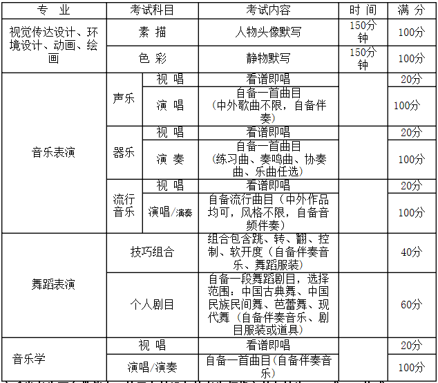 4.音樂表演專業(yè)考生一經(jīng)錄取,入學后需按報名附表中填寫的培養(yǎng)方向,參加專業(yè)考核,并按考核成績分聲樂、器樂、流行音樂三個方向培養(yǎng)。