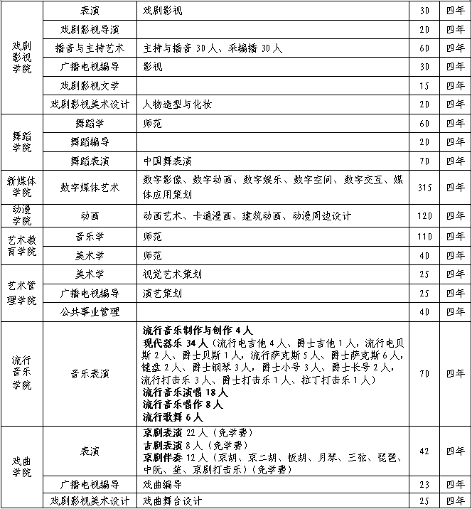 6、戲劇影視導演、音樂學(含師范)、作曲與作曲技術理論、藝術與科技(電子音樂制作與創作)、音樂表演(民族樂器/西洋管弦/聲樂/鋼琴/合唱指揮/流行音樂制作與創作/現代器樂/流行音樂演唱/流行音樂唱作/流行歌舞)、表演(戲劇影視/服裝與服飾展演/京劇表演/吉劇表演/京劇伴奏)、舞蹈學(師范)、舞蹈編導、舞蹈表演(中國舞表演)專業,以專業分擇優錄取。