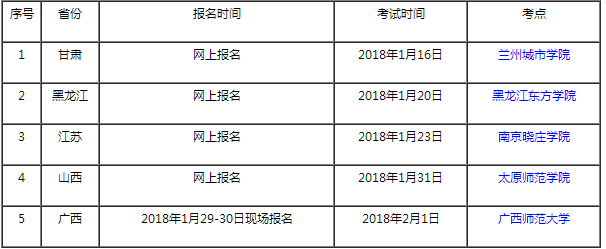(注: 甘肅、黑龍江、江蘇、山西實行網上報名,請考生關注所在省報名網站及報名時間,以免錯過。)