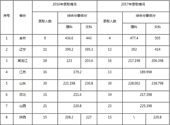 注:遼寧省2016年開始使用統(tǒng)考成績錄取,吉林省、遼寧省不單獨組織校考。