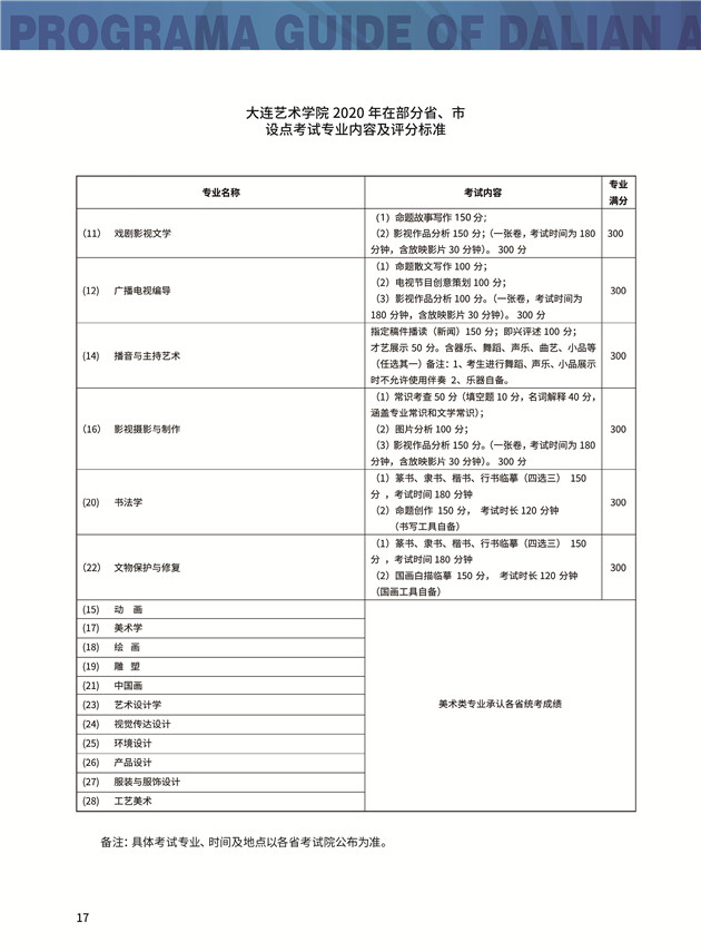 4.我校將通過校園網(網址http://www.dac.edu.cn)以及微信公眾平臺陸續公布各省(區)專業考試時間及地點,各專業科目具體考試安排于考試前一日詳見考點考試安排。