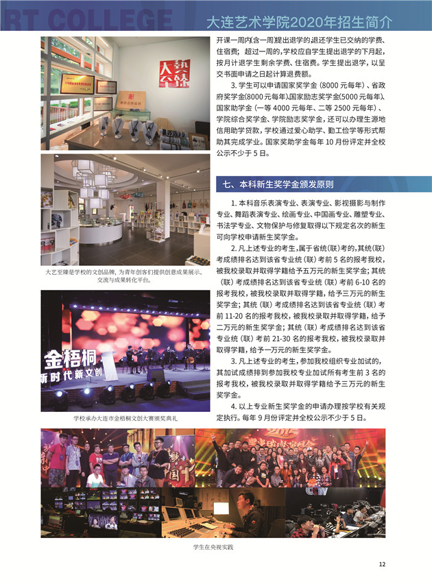 1.本科音樂表演專業、表演專業、影視攝影與制作專業、舞蹈表演專業、繪畫專業、中國畫專業、雕塑專業、書法學專業取得以下規定名次的新生可向學校申請新生獎學金。