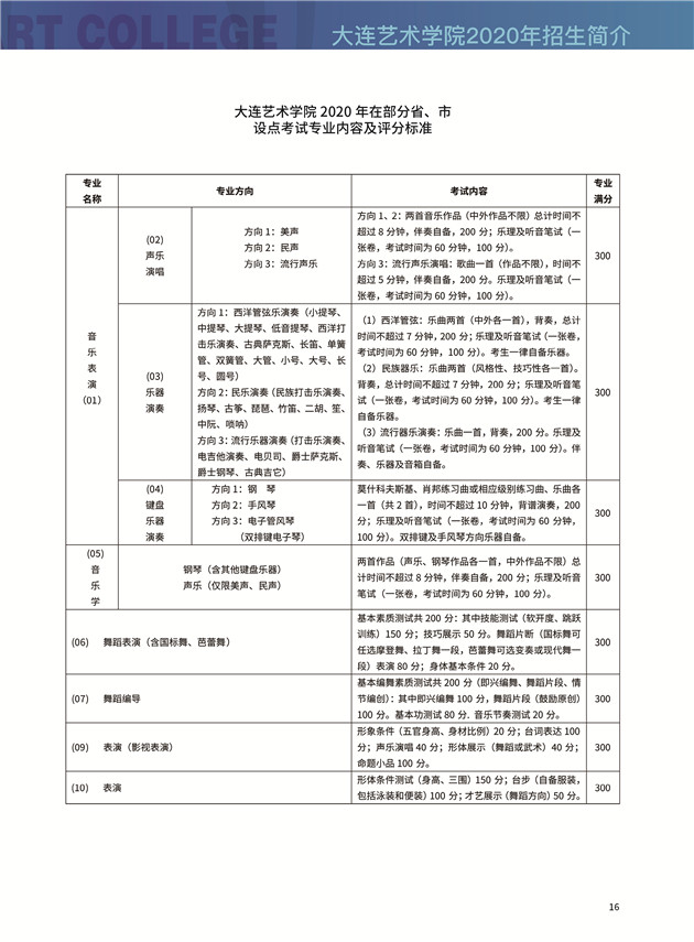 設有聲樂演唱、樂器演奏、鍵盤樂器演奏3個招考方向。