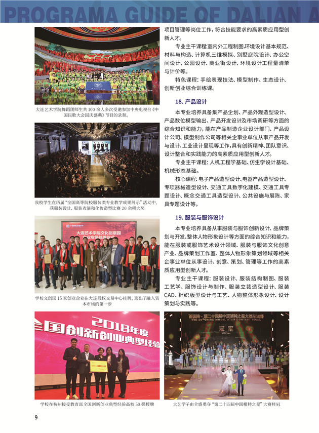 特色課程:手繪表現技法、模型制作、生態設計、創新創業綜合訓練課。