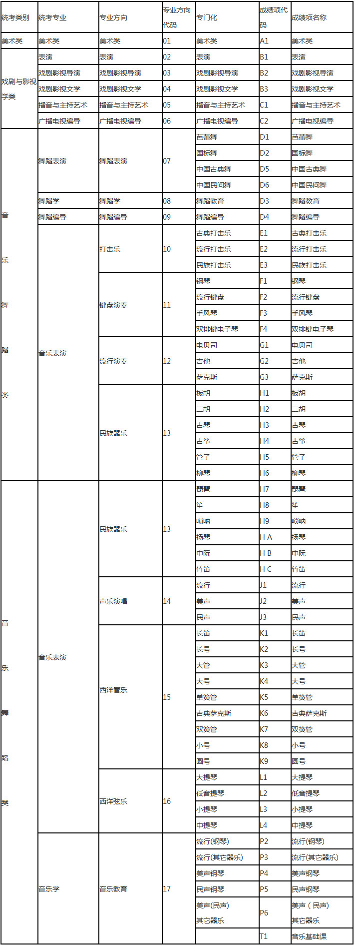 2.音樂舞蹈類:省統考包括五個專業:音樂學(音樂教育專業方向),音樂表演(含打擊樂、鍵盤演奏、流行演奏、民族器樂、聲樂演唱、西洋管樂、西洋弦樂專業方向),舞蹈表演,舞蹈學,舞蹈編導。