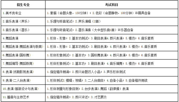 3.報(bào)考舞蹈類、表演類和播音與主持藝術(shù)專業(yè)的考生,要求身體健康,五官端正,身材勻稱,無發(fā)音器官殘疾,無色盲、夜盲。