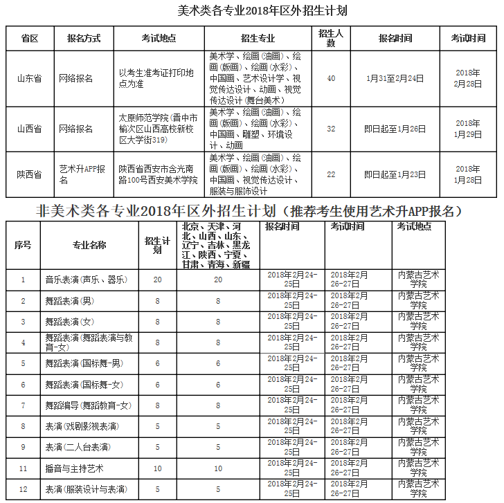 內(nèi)蒙古藝術(shù)學(xué)院2018年區(qū)外招生簡章