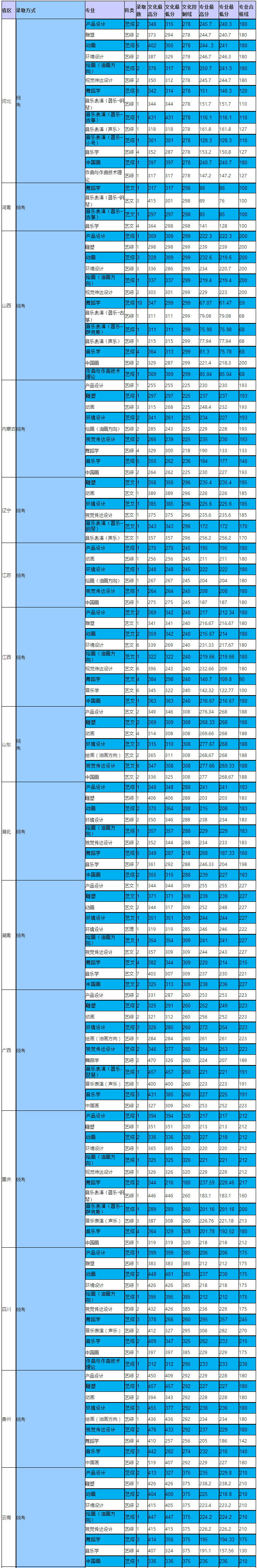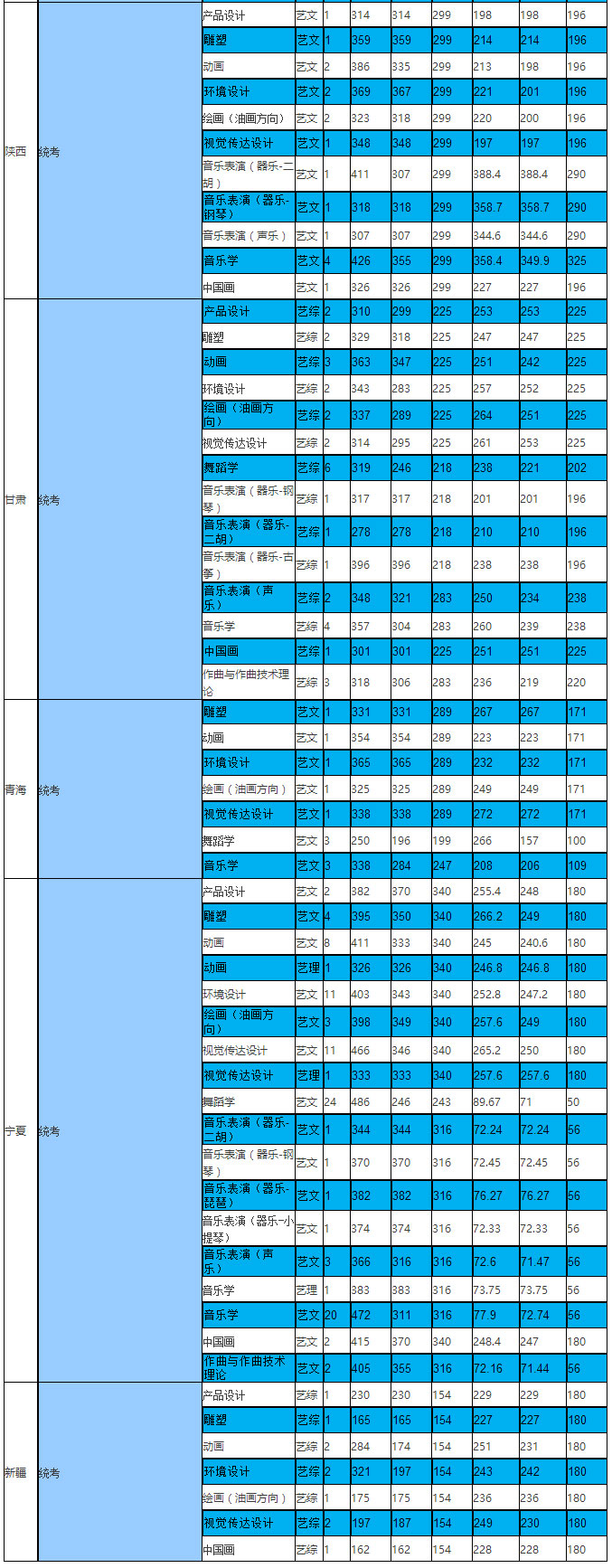 2016年北方民族大學藝術類分省分專業錄取分數統計表