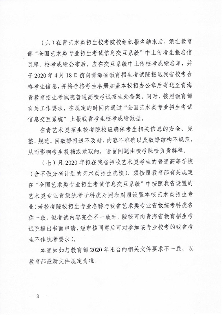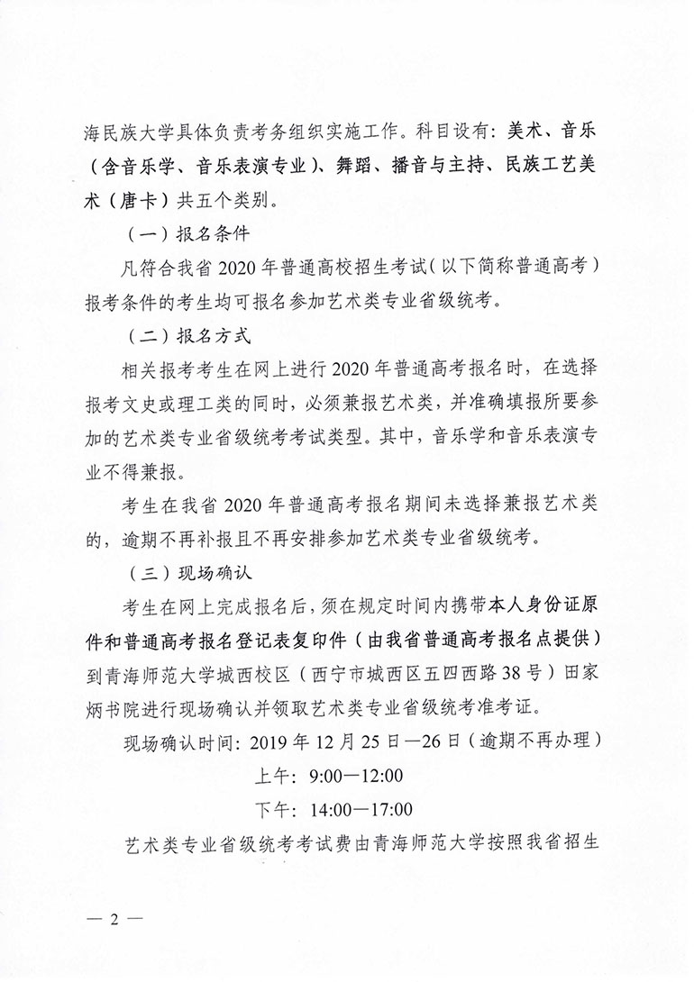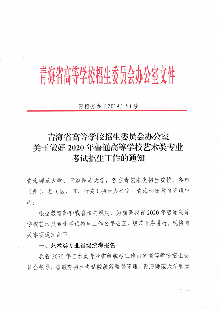 上一篇: 青海省高等學校招生委員會辦公室關于做好2019年普通高等學校招生藝術類專業(yè)考試工作的通知