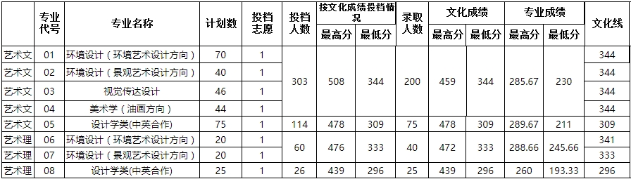 山東建筑大學2016年本科一批藝術類招生錄取統計表