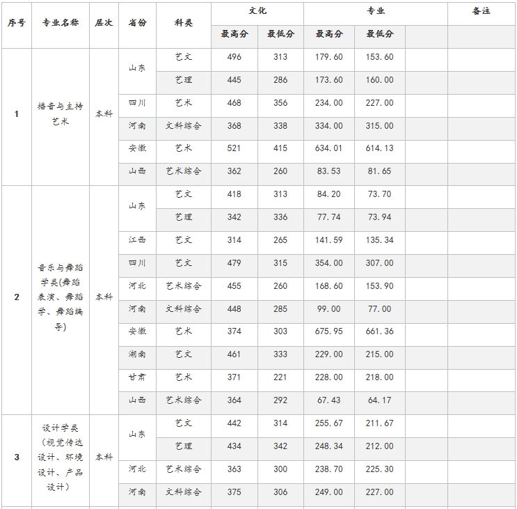山東青年政治學(xué)院2017年藝術(shù)類專業(yè)錄取分?jǐn)?shù)