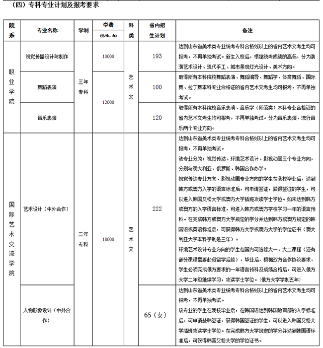 3.戲劇學、藝術史論、戲劇影視文學(戲曲文化傳播)本科專業不組織專業校考,專業成績認同山東省文學編導類統考成績。要求達到本科合格線方可填報志愿。