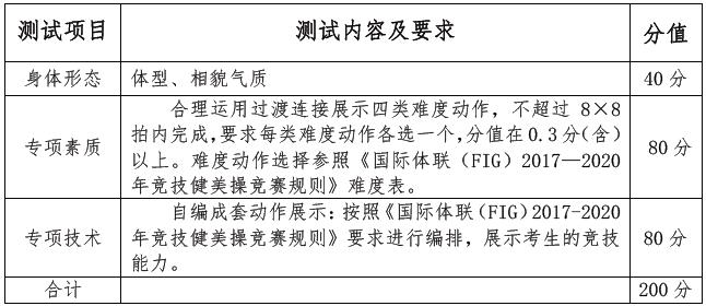 2020 年藝術類專業(舞蹈啦啦操方向)測試內容與方法