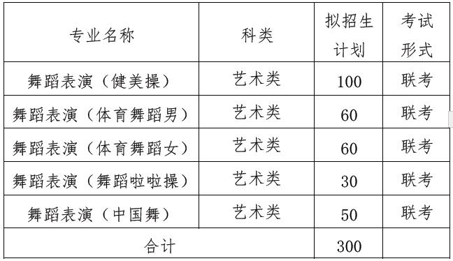 (注:①招生簡章公布的招生計劃為各專業擬招生計劃 ,最后各方向招生計劃以山東省招生考試院公布的計劃為準。②考生只能選擇一個方向報考,不得兼報。③舞蹈表演專業(健美操、體育舞蹈、舞蹈啦啦操方向)聯考由我院負責組織考試;舞蹈表演專業(中國舞方向)聯考由“山東青年政治學院”負責組織考試。)