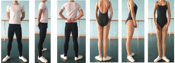 1、服裝要求:女生:上身純黑色吊帶芭蕾形體服,肉色褲襪;男生:純白色緊身短袖,純黑色緊身褲。(如下圖,服裝上不得印有特殊logo 或圖案)