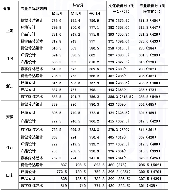 2016年華東理工大學藝術設計類專業錄取分數統計(文理兼收)