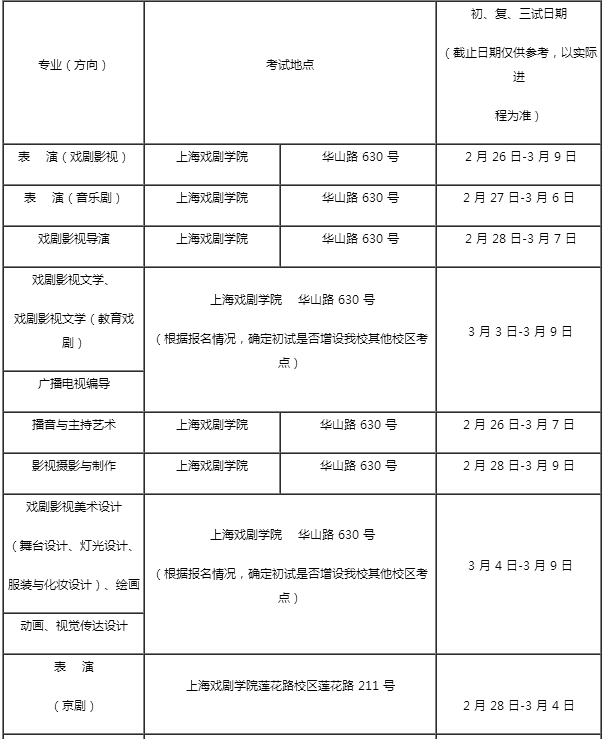 3.戲劇影視文學、戲劇影視文學(教育戲劇)、廣播電視編導三個專業(方向)初、復試統一考試,三試分別面試。