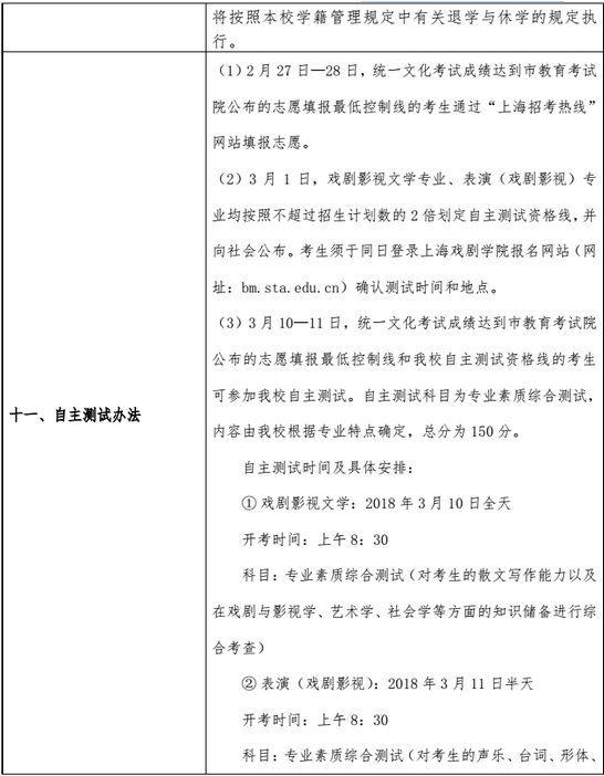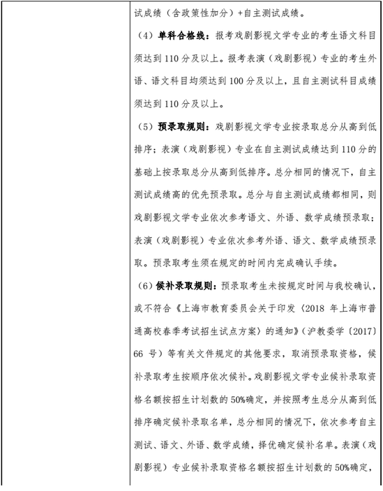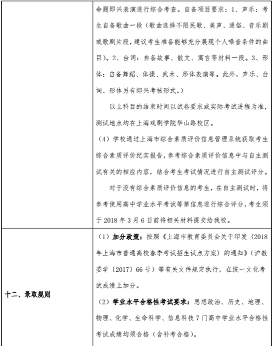 上海戲劇學院2018春季高考招生章程