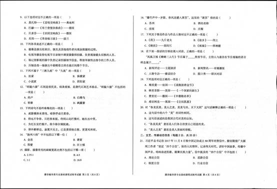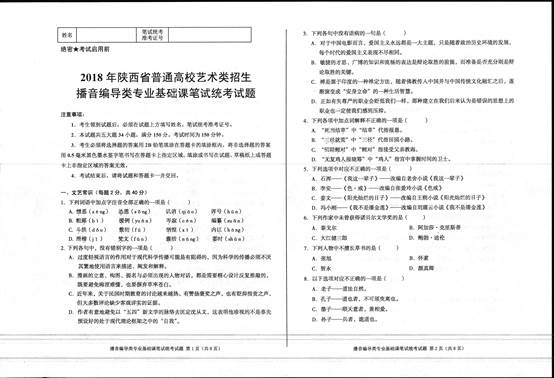 2018年陜西省普通高校藝術類招生播音編導類專業基礎課筆試統考試題