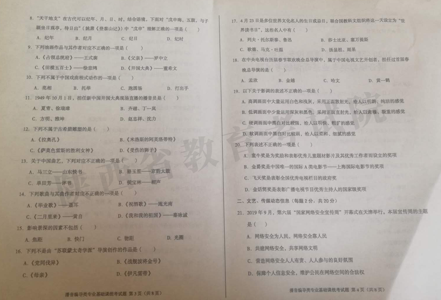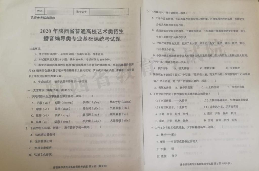 上一篇: 2020年陜西省普通高校藝術類招生播音編導類專業基礎課筆試統考試題