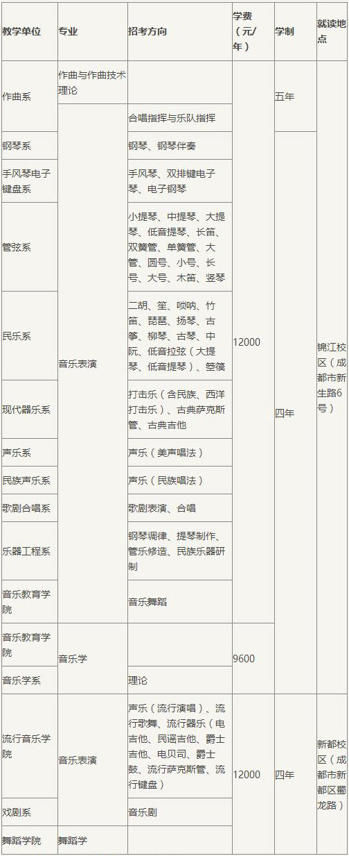 (5)專業考試地點:四川音樂學院(成都市新生路6號)。