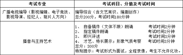 報考視覺傳達設計、環(huán)境設計、產(chǎn)品設計專業(yè)的考生須參加藝術類美術與設計類專業(yè)考試;報考廣播電視編導專業(yè)的考生須參加藝術類編導類專業(yè)考試;報考舞蹈表演專業(yè)的考生須參加藝術類舞蹈類專業(yè)考試;報考播音與主持藝術專業(yè)的考生須參加藝術類播音與主持類專業(yè)考試。