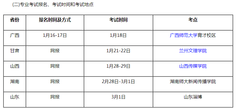 湖南、山西、甘肅、廣西和山東(播音與主持藝術(shù)專業(yè))考生參加我校組織的專業(yè)考試。