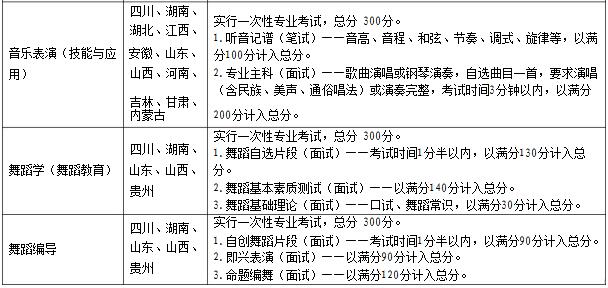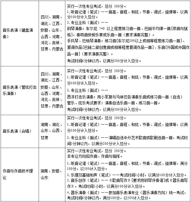 注:1.作曲與作曲技術理論及音樂表演所有專業方向“聽音記譜(筆試)”科目實行一次性考試,成績通用。
