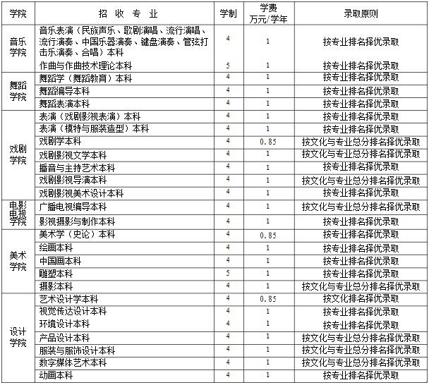 (二)我校為教育部批準的獨立設置本科藝術院校,藝術類本科專業在省外不編制分省分專業招生計劃,可自主劃定各藝術類本科專業高考文化成績錄取控制分數線(在錄取前報有關省(區)招辦備案),如各省(區)對藝術類文化最低錄取控制分數線另有要求的,按照考生所在省(區)規定執行。