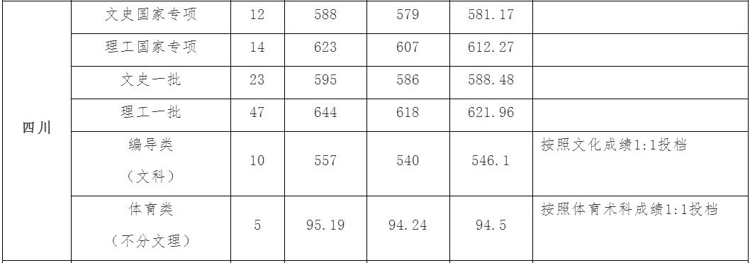 專業 | 錄取數 | 最高分 | 最低分 | 最低分對應位次號 | 平均分 |