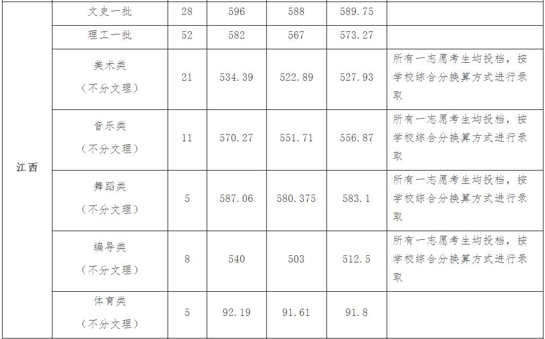 舞蹈學(師范) | 5 | 562 | 552 | 25 | 556.2 |