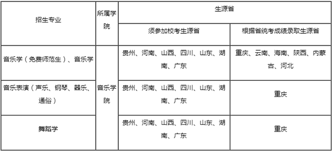 5.重慶市報考我校音樂、舞蹈類各專業(yè)的考生,以統(tǒng)考成績作為錄取依據(jù)。